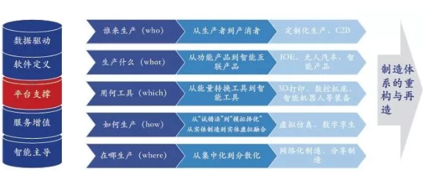 基于對(duì)智能制造核心技術(shù)體系的現(xiàn)階段發(fā)展程度的深度調(diào)研以及對(duì)其大規(guī)模應(yīng)用落地的預(yù)測(cè),智能制造的初步體系,在2020年前后將初現(xiàn)端倪,其主要特征可以概括為:數(shù)據(jù)驅(qū)動(dòng)、軟件定義、平臺(tái)支撐、服務(wù)增值、智能主導(dǎo)。