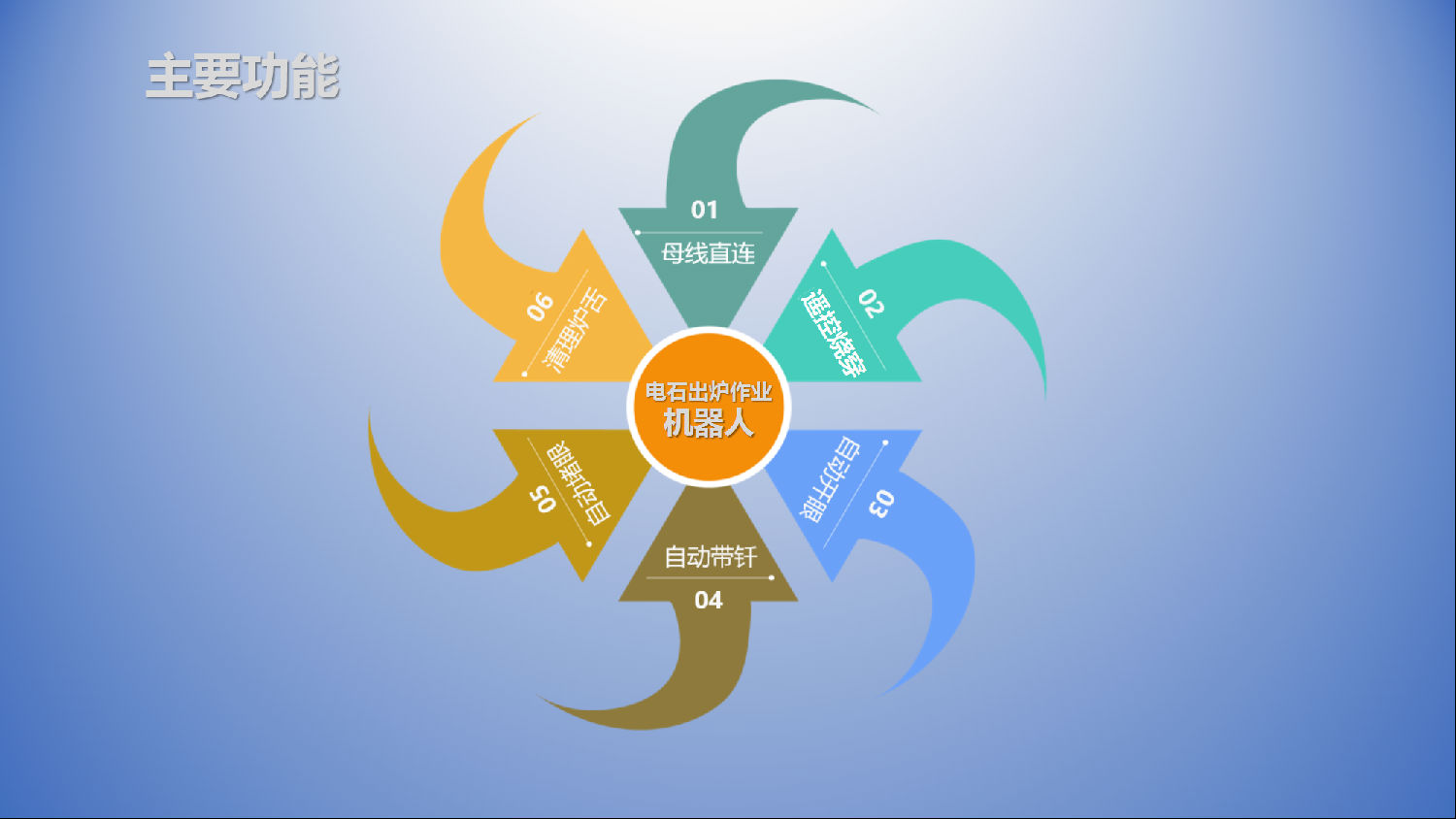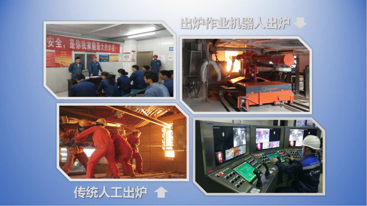 我公司自主研發(fā)并生產(chǎn)的E-Hydic電石出爐作業(yè)機器人系統(tǒng),將出爐作業(yè)人員從安全風(fēng)險高、勞動強度大、爐前溫度高的人工作業(yè)現(xiàn)狀中解放出來,操作人員在中控室內(nèi)通過人機交互平臺可遠程操控機器人完成:母線直連、 遙控?zé)?、自動開眼、自動帶釬、自動堵眼和清理爐舌等作業(yè),可以穩(wěn)定生產(chǎn)工藝、提高產(chǎn)量,充分滿足了電石爐前作業(yè)的生產(chǎn)要求,作業(yè)效率明顯提高。 既保證了安全生產(chǎn)又實現(xiàn)了減員增效。