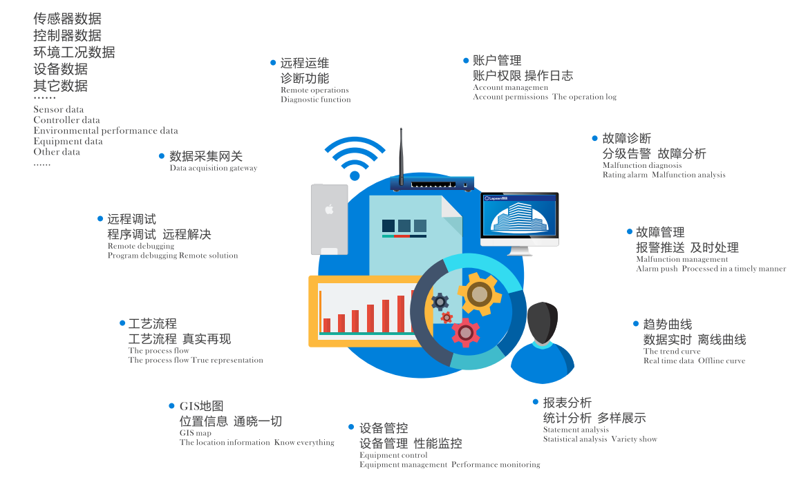 ROMS系統(tǒng)基于H5開發(fā),借助圖形化的工具,直觀立體展示設(shè)備數(shù)據(jù)信息,讓用戶與設(shè)備信息互通,為遠程故障診斷提供分析手段,為設(shè)備的安全提供堅實的保證,幫助企業(yè)開源節(jié)流,助推傳統(tǒng)制造企業(yè)轉(zhuǎn)型升級。